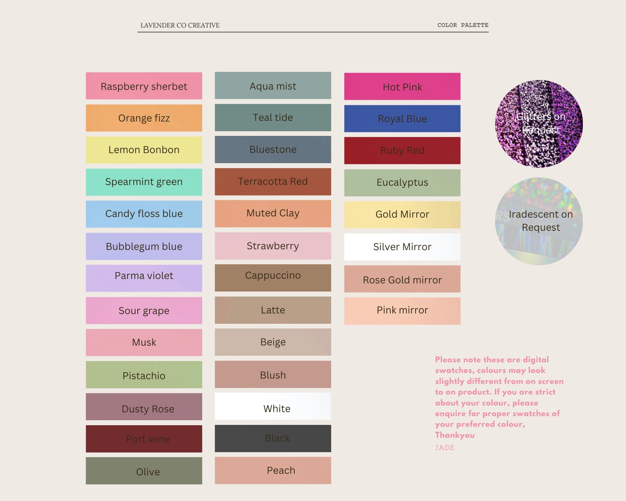 We have a few colours to choose from to suit your theme, if your specific colour is not there, please get in contact and we can get for you! If your also after a different size feel free to message.