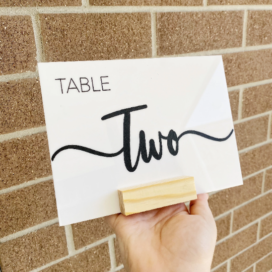 Acrylic table numbers for your wedding day or next event to add an elegant touch to your tables. The edges in this design are beautifully rounded, adding softness to the appearance.