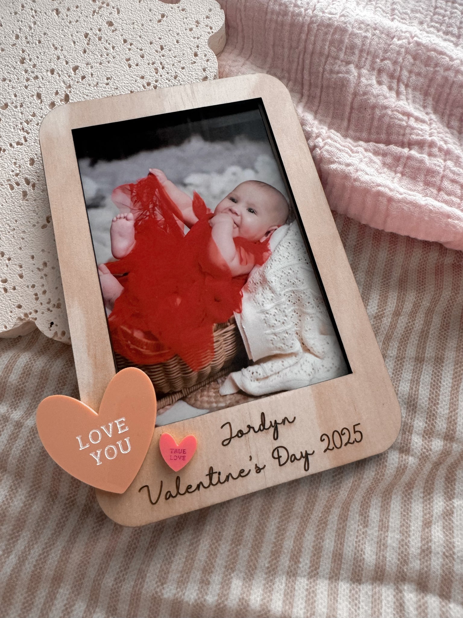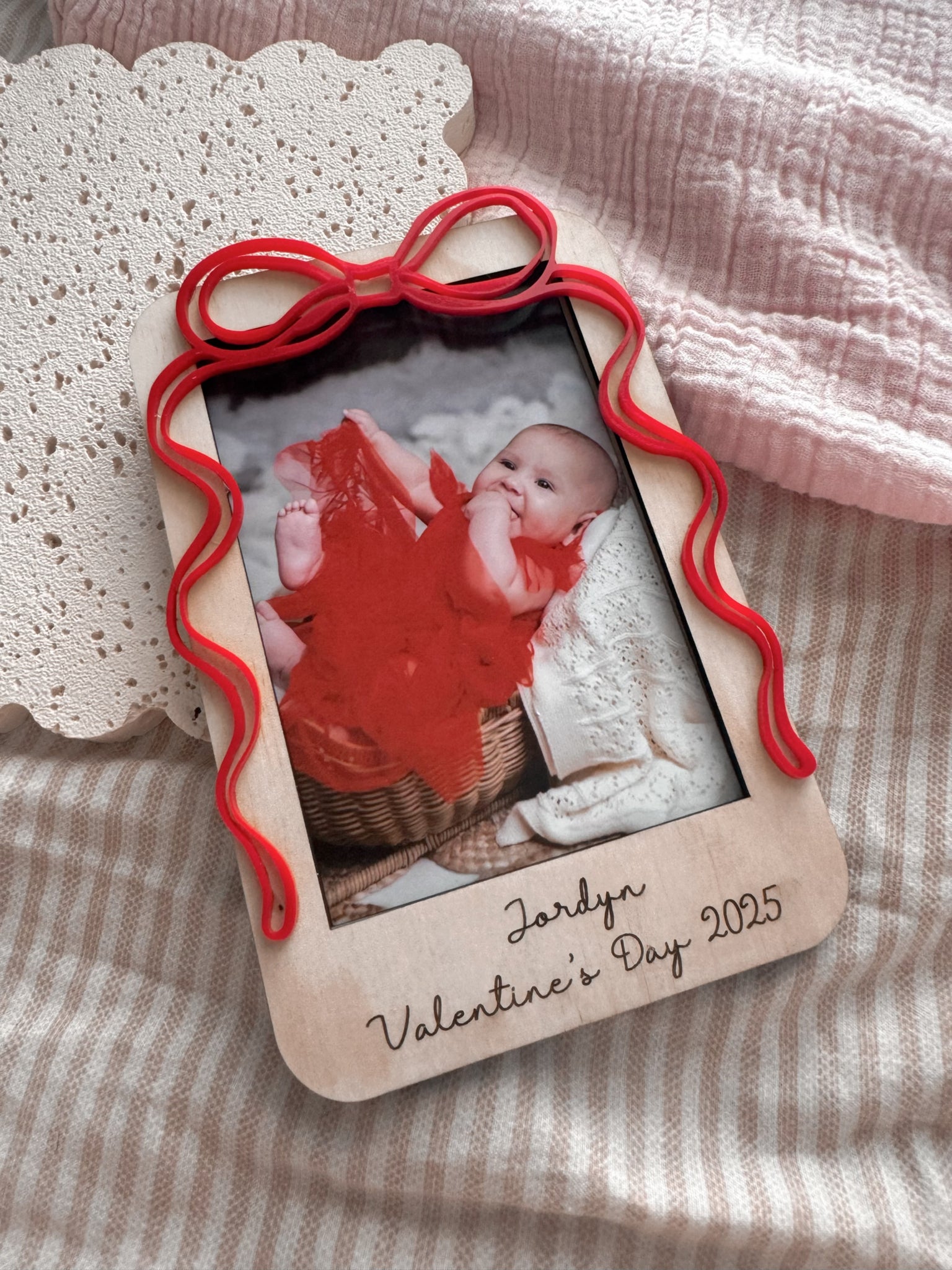 Designed with a sweet Valentine’s bow detail and custom engraving, this photo magnet makes the perfect baby’s first Valentine’s Day keepsake, thoughtful gift for parents, or a meaningful personalised Valentine’s gift.