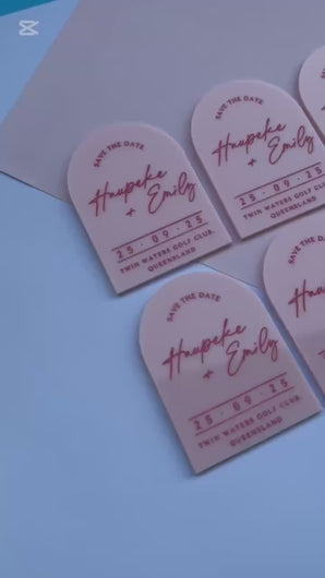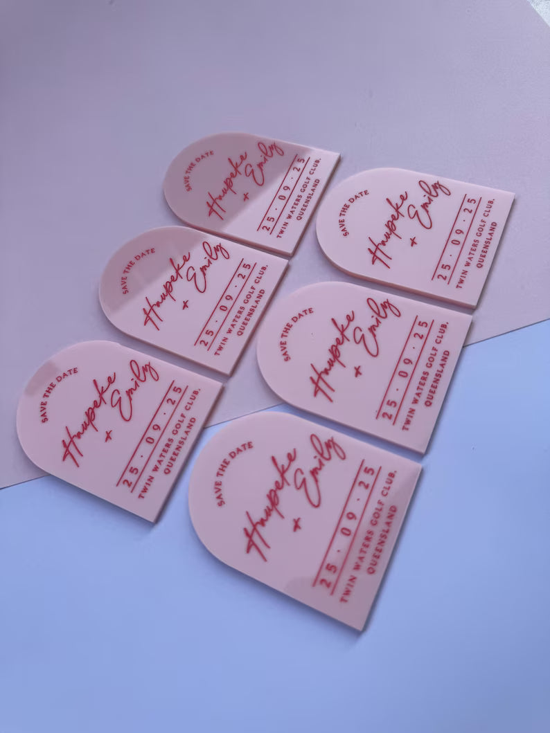 Acrylic Save the Date Magnets! These elegant magnets are the perfect way to announce your big day while giving your guests a unique keepsake to remember.