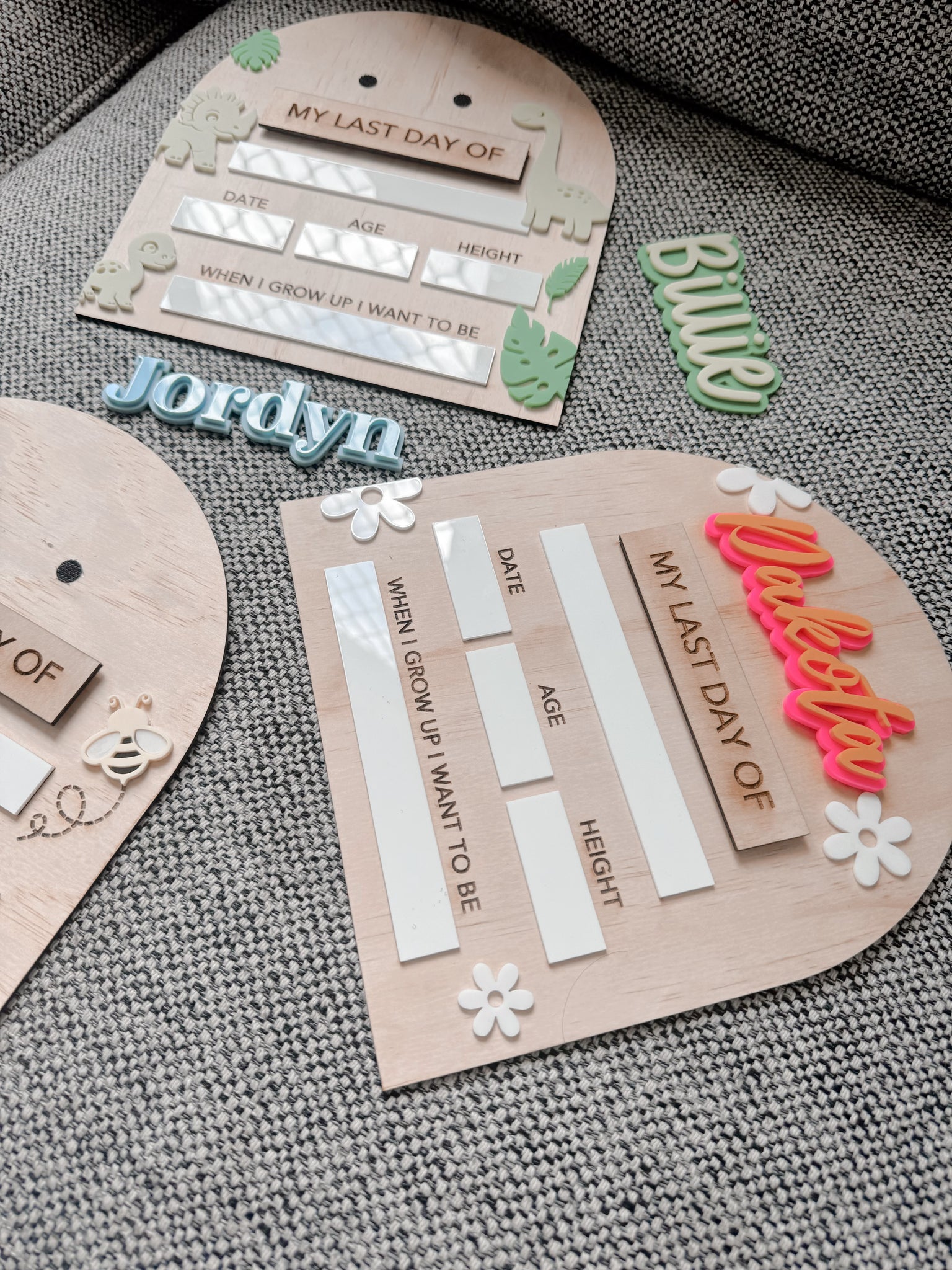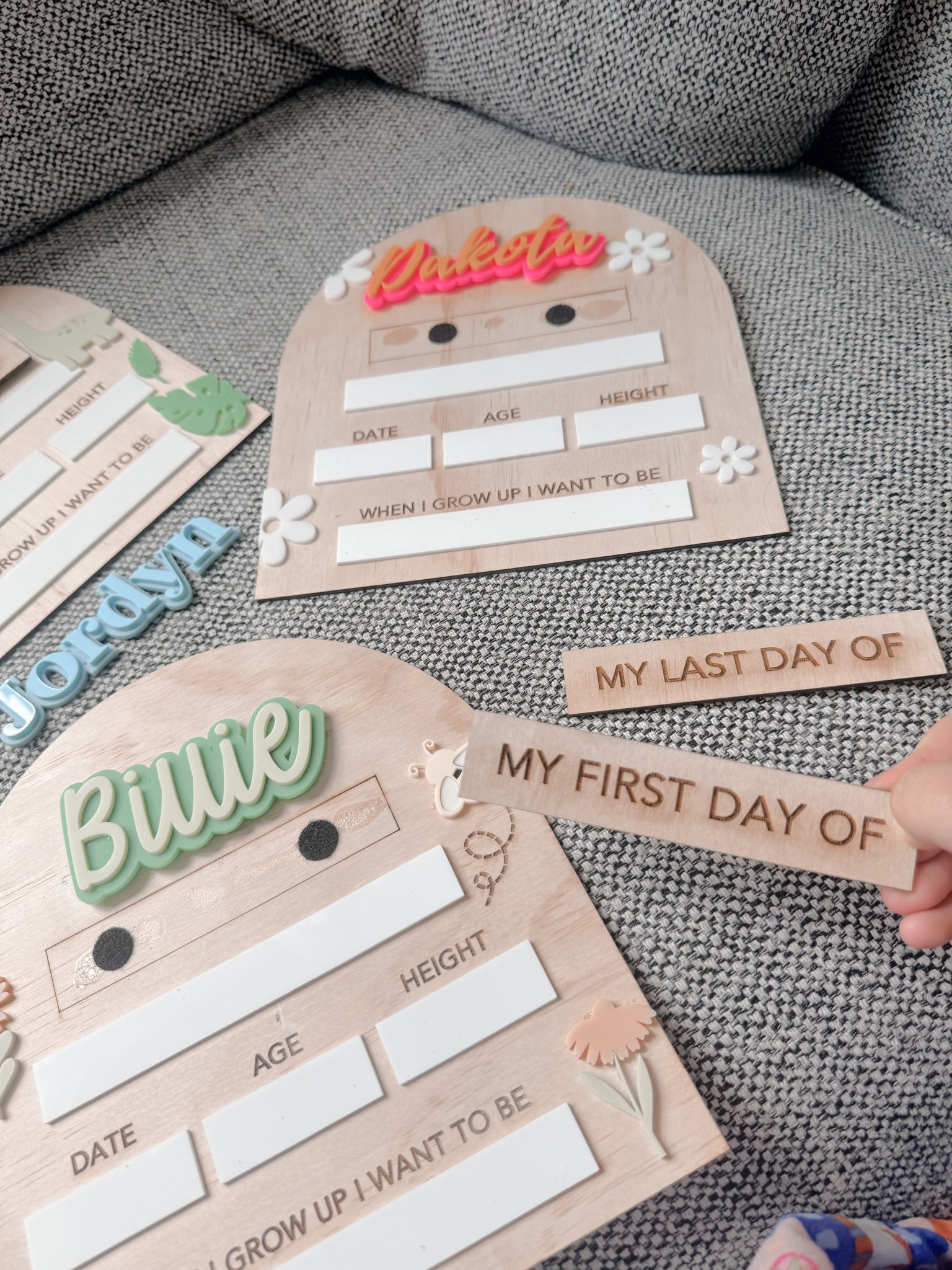 This board features interchangeable name pieces and interchangeable “My First Day” / “My Last Day” sections, making it perfect for families with multiple children or for reusing across different school years. Simply swap the pieces, write in the details, snap the photo, and create a tradition you’ll love repeating.